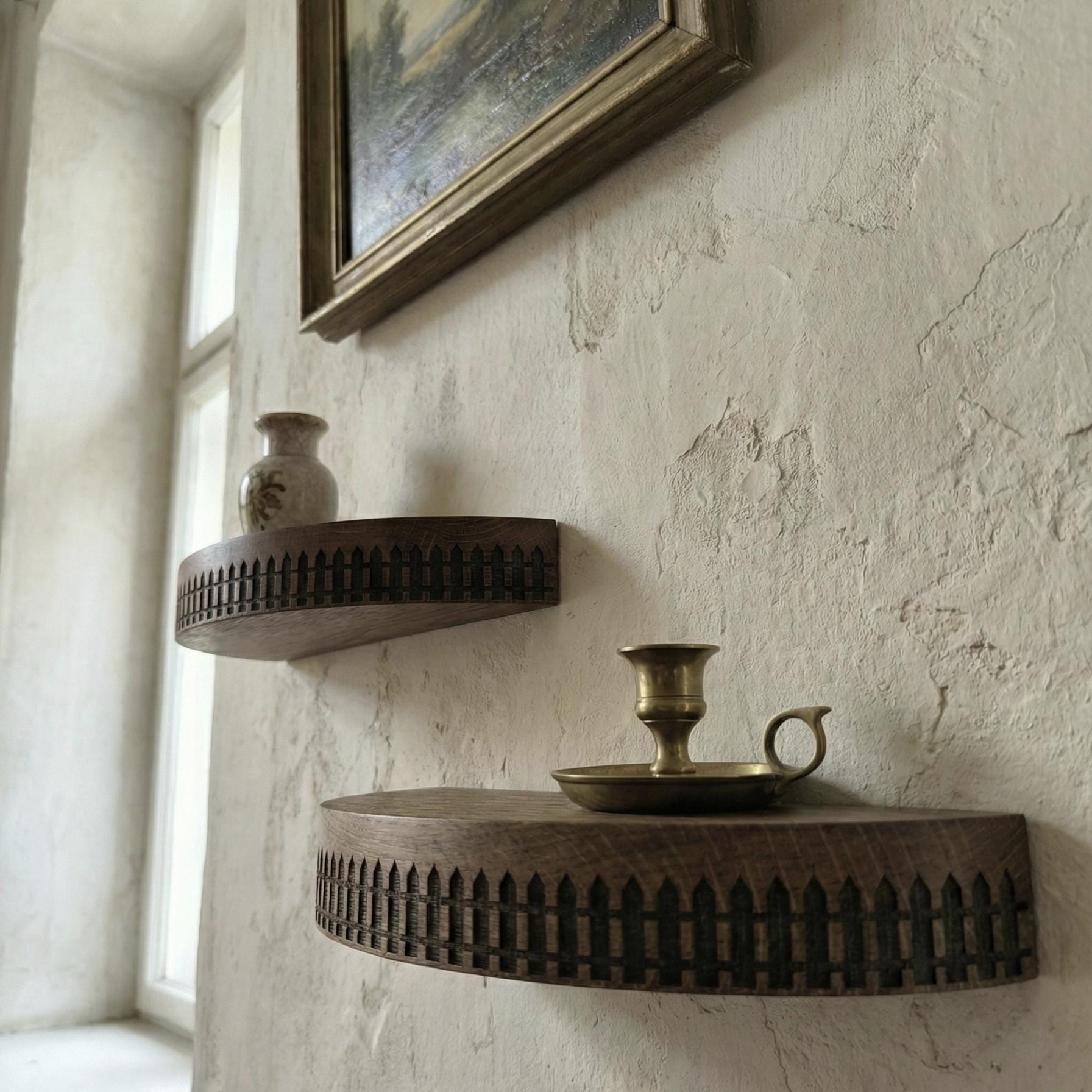 Half Moon Floating Wall Shelf | Semicircle Wood Shelf | Geometric Mosaic / Greek Key / Picket Fence Edge