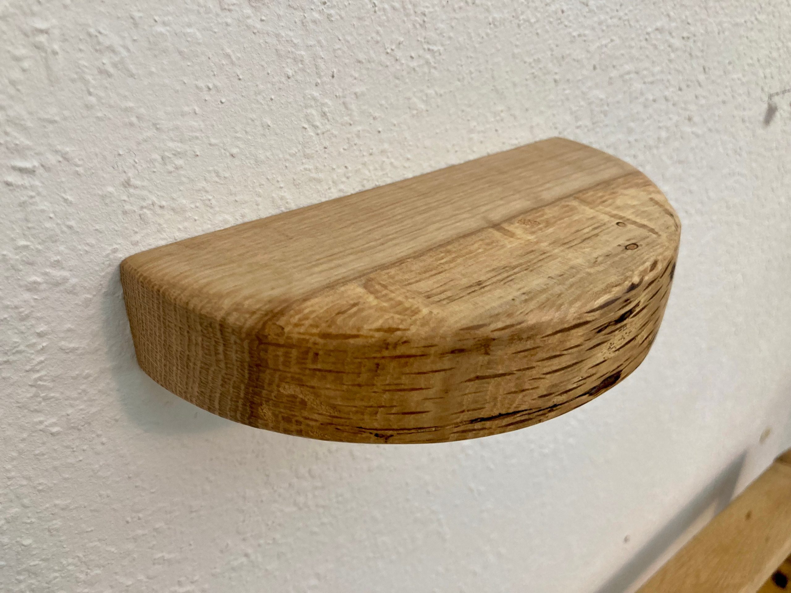 These wooden shelves sit flush on the wall and can be installed in less than 5 minutes and are still very sturdy.
