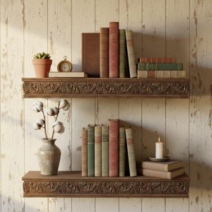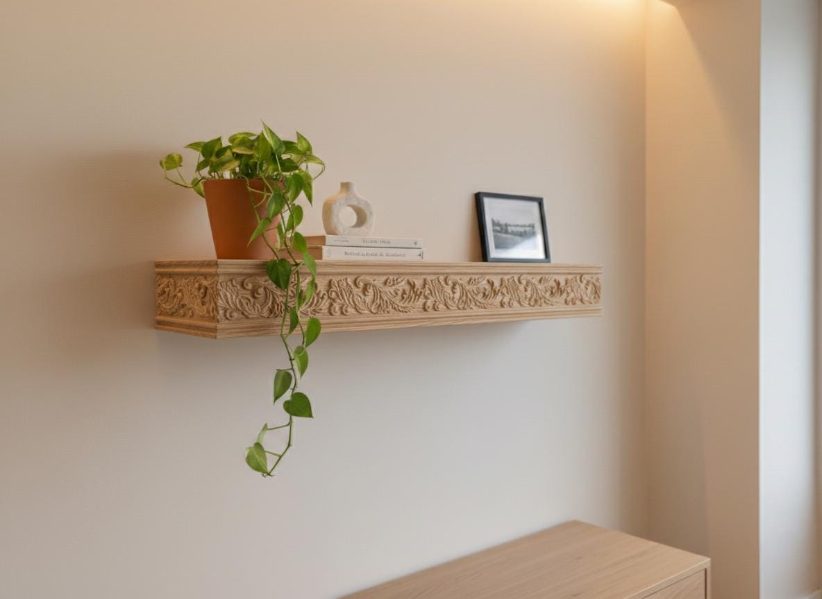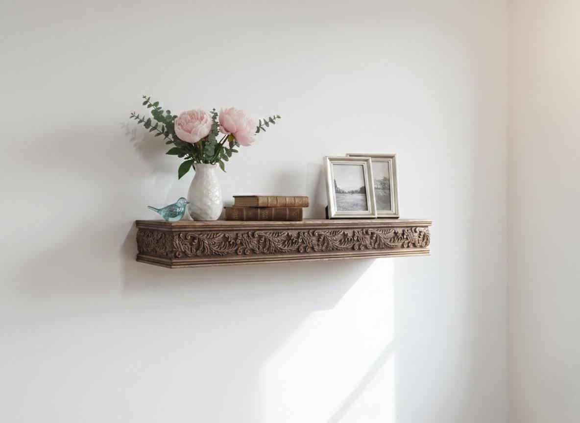 Hand Carved Wooden Wall Shelf
