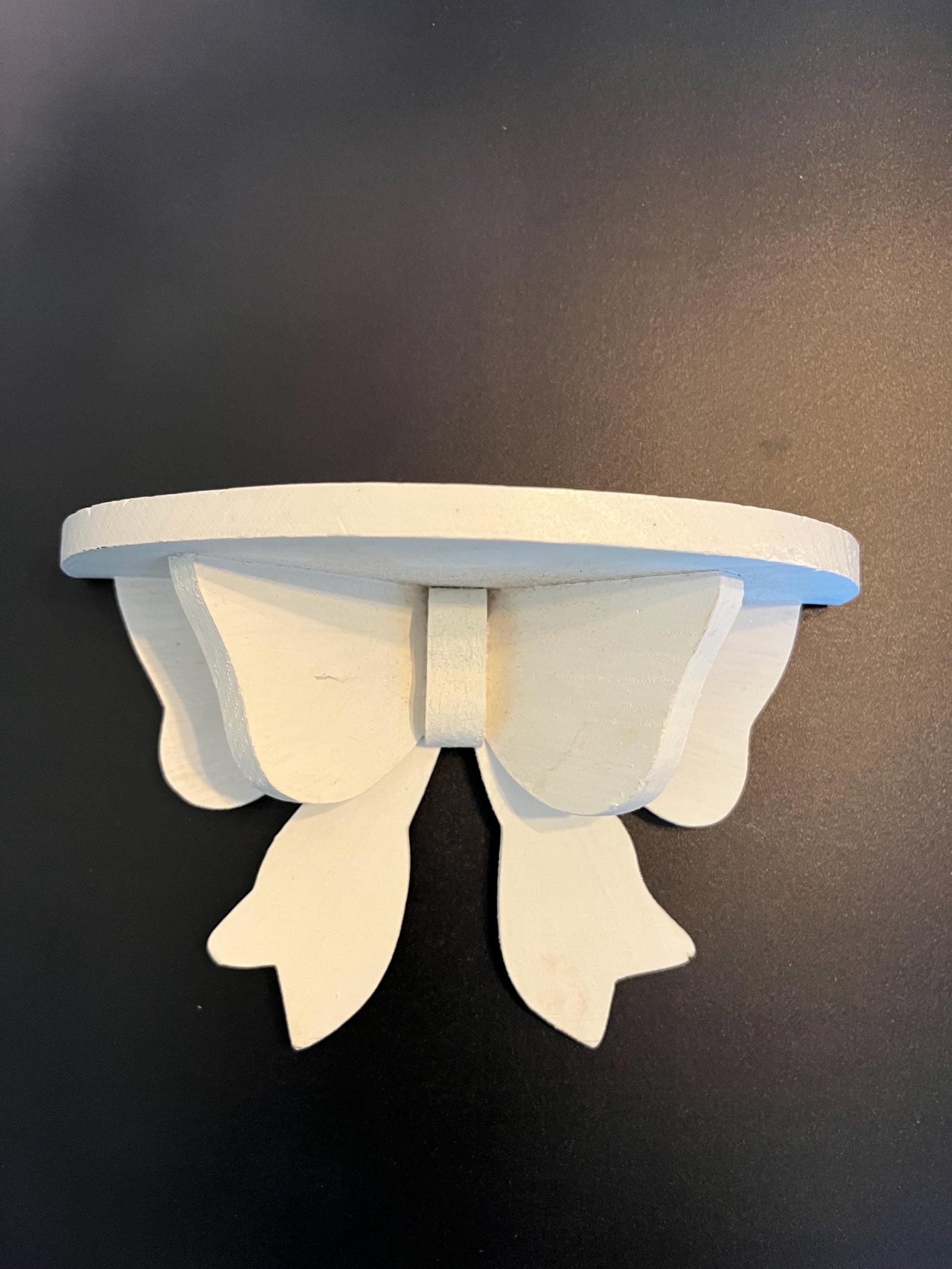 Be the first to review “Hand Painted Small White Wooden Shelf with Bow 7x3x5”” Cancel reply