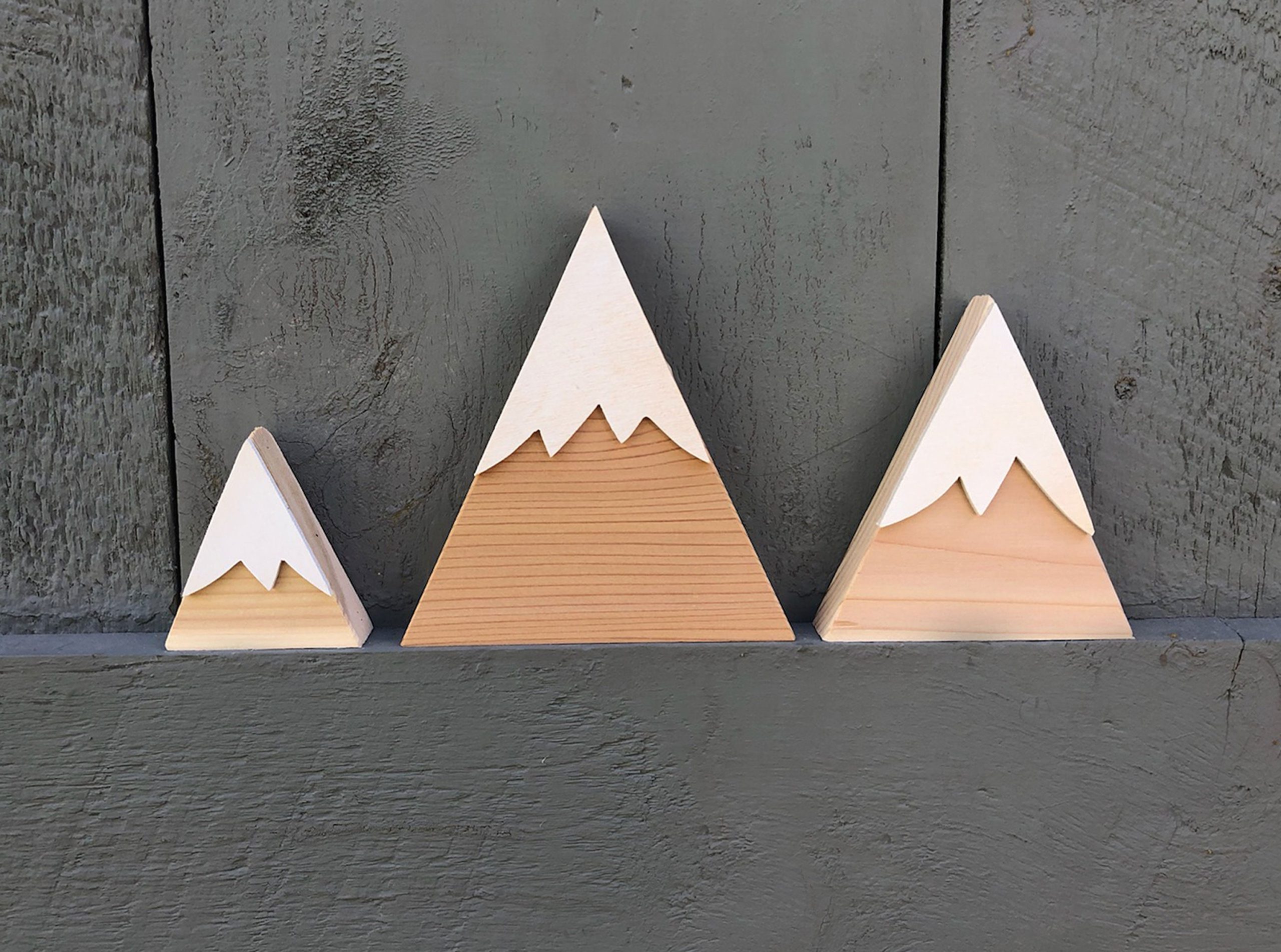Small Wooden Mountains Setof 3, Shelf Sitters, Decorative Mountains, Little Wooden Mountains, Wood Mountains, Handmade Mountains