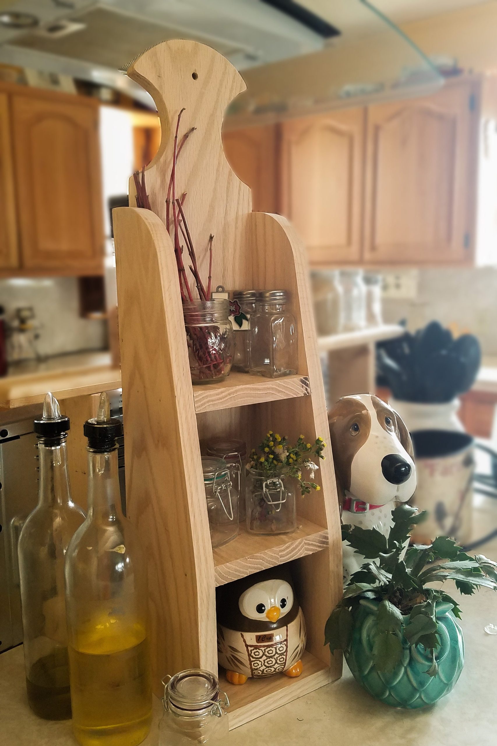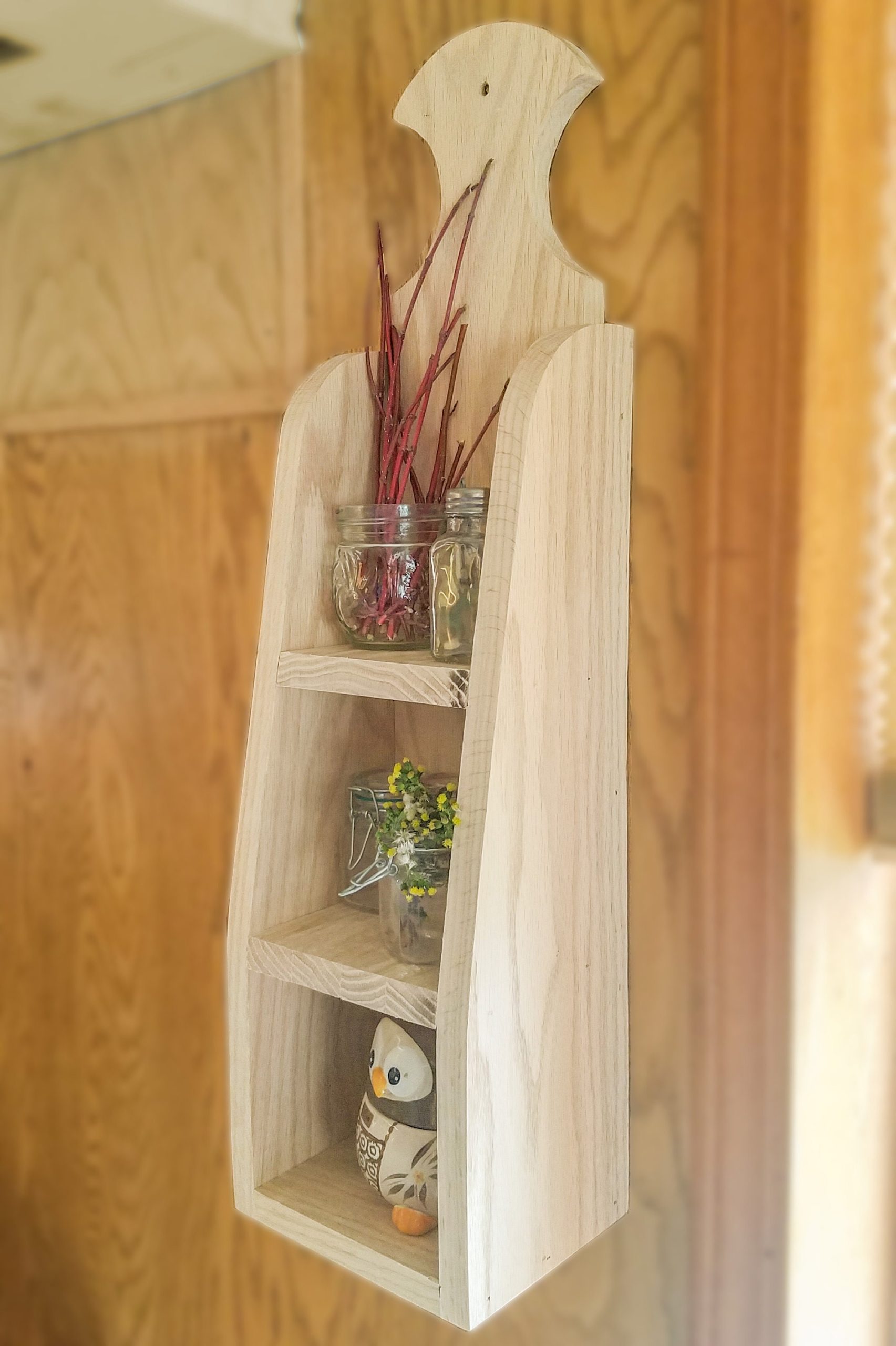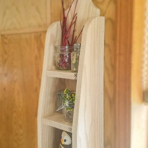 A cute little decorative shelf that can be hung up or sat on a counter. Can be styled for decor or is sturdy enough to handle day to day use. Created on a little farm in the Treasure Valley, each piece is made with love by Jeff, with the help of his wife Julie. Pieces finished to order, available in the colors pictured, or we can leave it ready for you to customize. If you love the natural oak wood, we can add a clear seal as well.